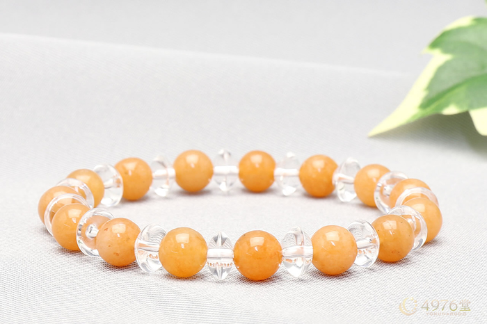 オレンジアベンチュリン ブレスレット 水晶ボタン交互