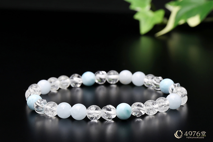 ラリマー・アクアマリン・水晶 ブレスレット 6mmグラデーション